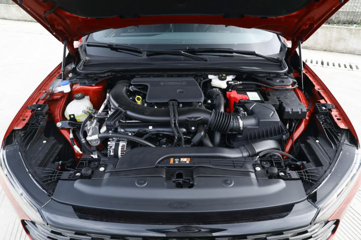 再聊聊驾驶感受,这可是福特的拿手好戏。新蒙迪欧搭载的是EcoBoost 2.0T 发动机,最大功率比老款提升了 5kW,最大马力 261Ps,峰值扭矩 408N・m,而且在 2000-4000rpm 的转速区间里都能输出峰值扭矩。可能光说参数大家没概念,对比一下同级别常见的车型,凯美瑞 2.0L 车型的最大功率是 127kW,最大扭矩 206N・m;迈腾 1.4T 车型是 110kW,最大扭矩 250N・m,这么一对比,新蒙迪欧的动力参数确实更可观。