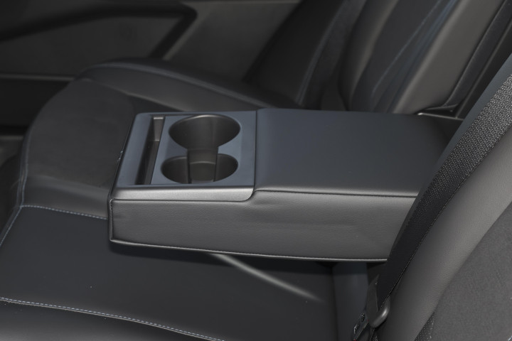 后排地台凸起不算高,中间座位的空间也够宽,坐个成年人没问题。而且后排还有出风口和 USB+Type-C 双接口,长途坐车的时候,中间乘客也能方便地给手机充电,这点挺贴心。后备箱常规容积是 520L,日常放几个行李箱、购物袋完全够用,要是需要装大件物品,把后排座椅 40:60 比例放倒,最大容积能达到 1550L,搬个婴儿车、折叠自行车啥的都不在话下,家用属性拉满。